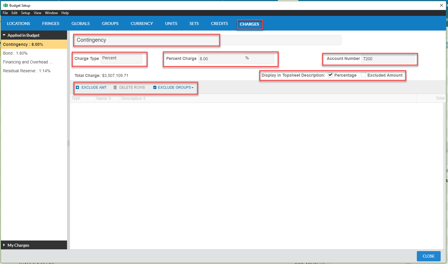 Summary: This article details the process for the user to get to the Charges and the settings to add and edit them in the new Movie Magic Budgeting program.